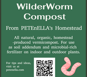 Check out our homestead product line, WilderWorm Compost, and coming later this year, Broken Chair Honey and WilderTea.